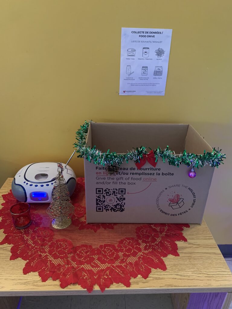 02/12/2025 | Encore une fois, la Clinique participe à la collecte du temps des fêtes de denrées non-périssables organisée par l’organisme Partageons l’espoir.