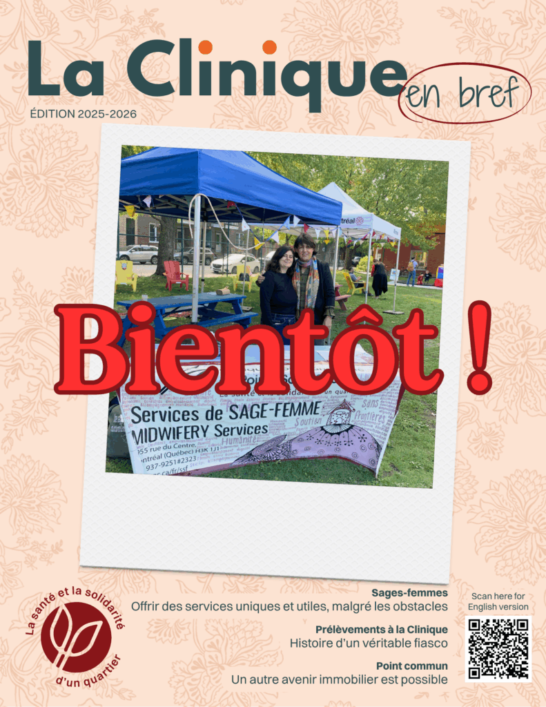 La Clinique en bref Le magazine pour les membres de la Clinique communautaire de Pointe-Saint-Charles Numéros précédents Octobre 2022 Avril 2022 Février 2022 Octobre 2021 Février 2021 Décembre 2020 Octobre 2020 Mai 2020